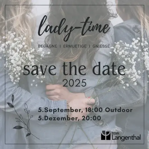 Während der lady-time möchten wir in einer wohlwollenden stimmigen Atmosphäre Raum für Begegnung schaffen; Frauen brauchen andere Frauen.
